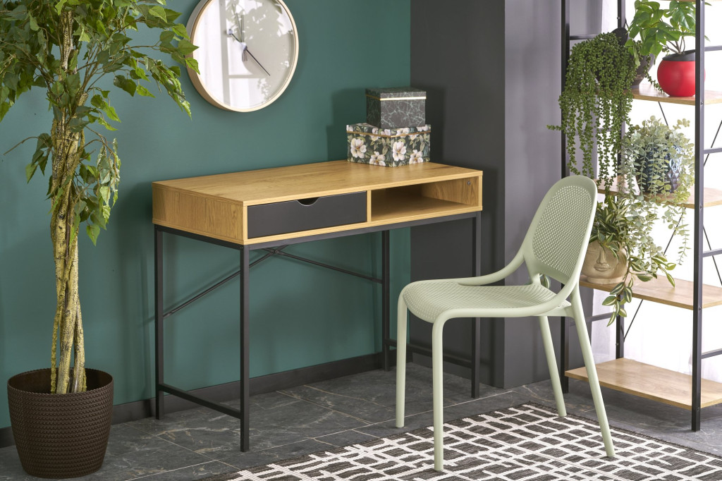 méretek: 95/48/76 cm, anyag: laminált forgácslap - melamin / porfestett acél, szín: arany tölgy / fekete