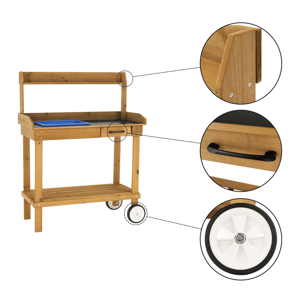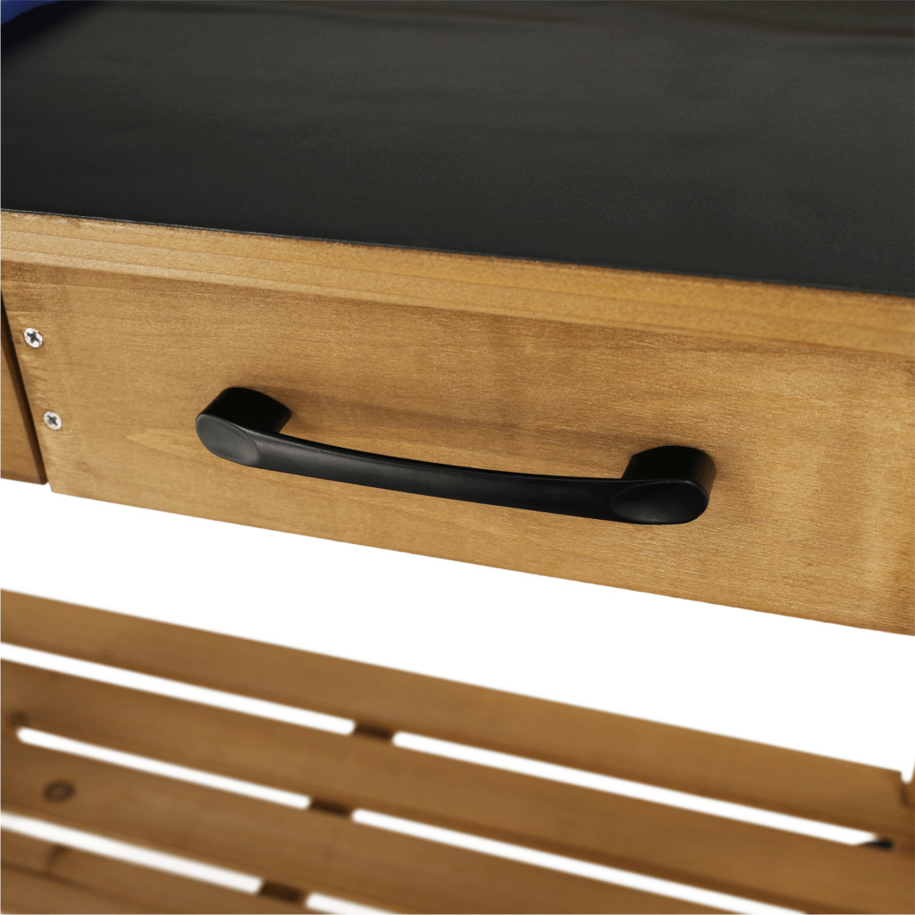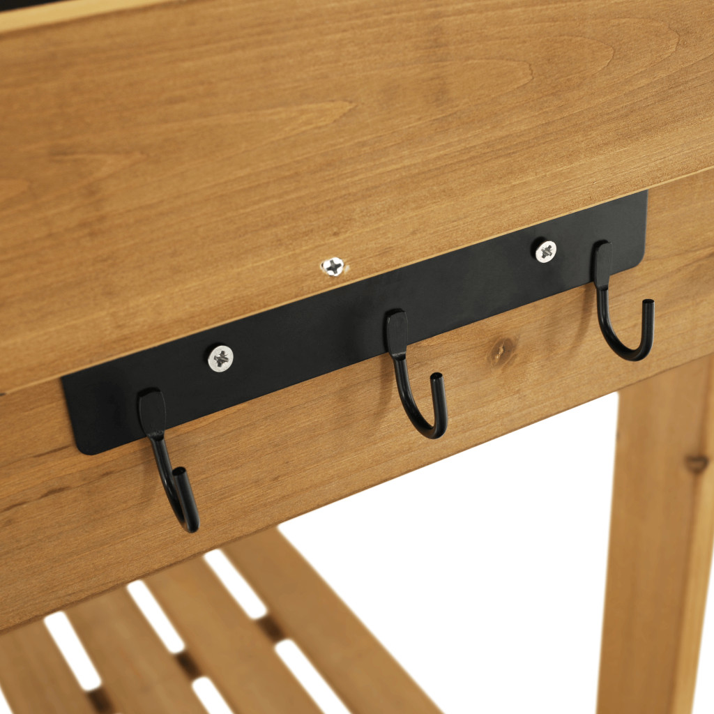 A BARDY tömörfa munkaasztal kis tároló fiókkal és mosogató résszel, 1db polccal, 3db akasztóval, modern stílusa és kihasználhatósága miatt közkedvelt bútordarab.