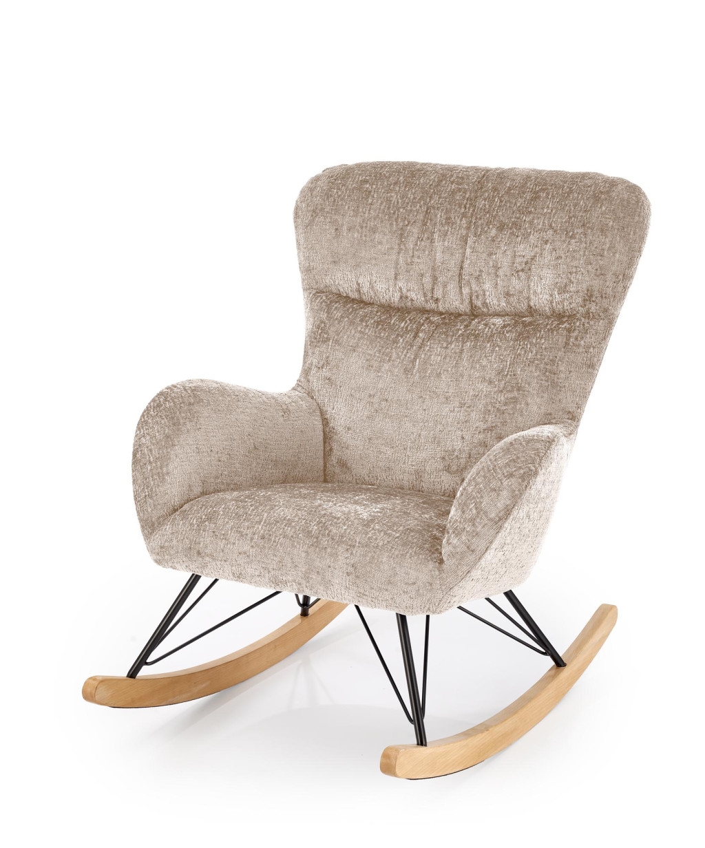 méretek: 77/106/92/44 cm; anyag: szövet / porfestett acél / tömör fa, szín bézs