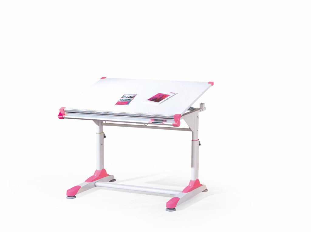 állítható magasságú és asztallap dőlésszögű íróasztal, méretek: 100/66/69÷84 cm, anyag: lakkozott MDF / festett acél, szín: fehér / zöld / rózsaszín (2 szett dekorációval)