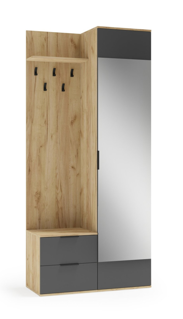 méretek: 100/45/202,5 cm, anyag: tükör / laminált faforgácslap, szín: arany tölgy / antracit