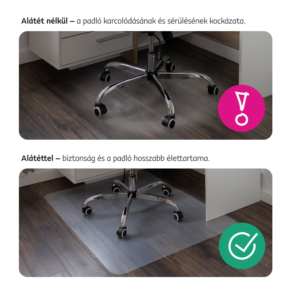 Az ELLIE lekerekített sarkú védőalátét székek alá tökéletes kiegészítője lehet a gyerekszobáknak, vagy akár irodáknak is. Többféle méretben kapható, ütés és karcolás ellen védi a padlót.