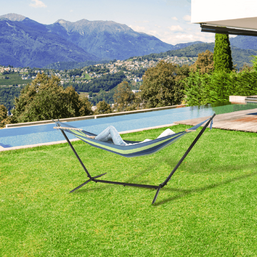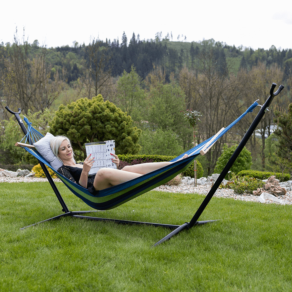 Az EVANA csíkos pamut függőágy, egyedi megjelenése és kihasználhatósága miatt közkedvelt bútordarab.