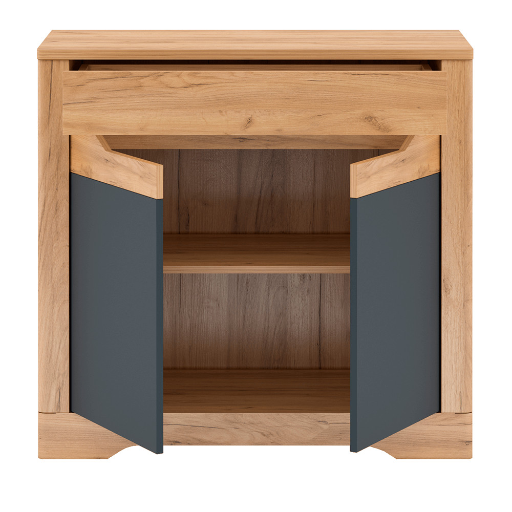 A FIDEL aranytölgy/szürke komód a FIDEL bútorcsalád része, melyet használhatunk nappaliban, étkezőben, vagy akár a hálószobában is. Modern megjelenése és kihasználhatósága miatt közkedvelt bútordarab.
