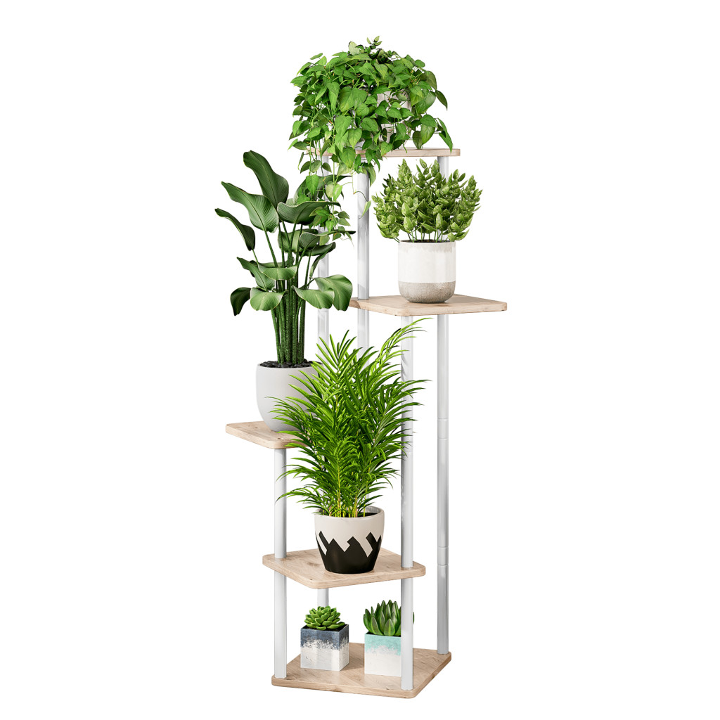 Fém virágállvány, fehér/sonoma tölgy, ADITE