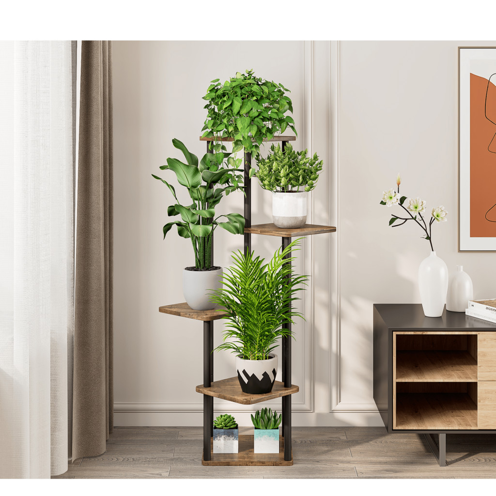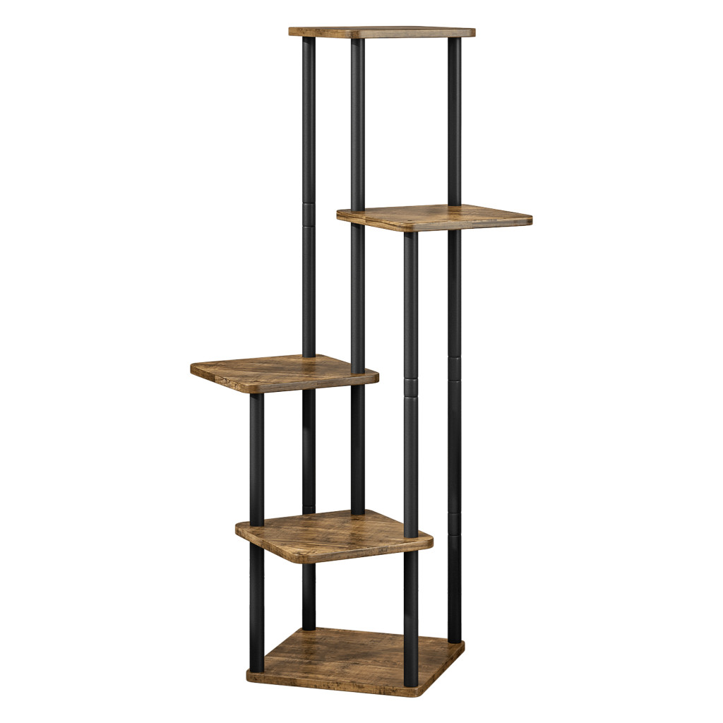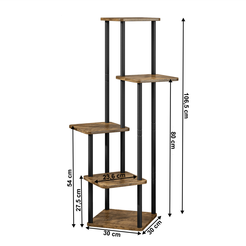 Fém virágállvány, fekete/rusztikus fa, ADITE