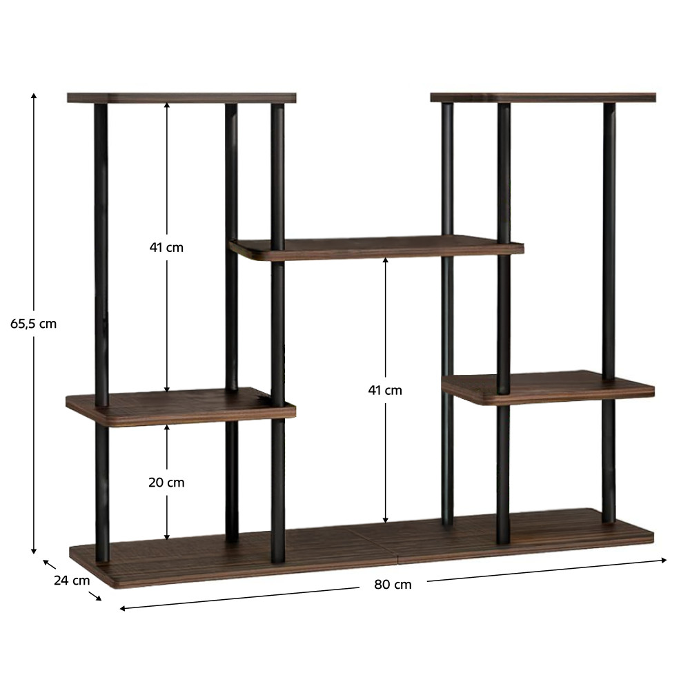 Fém virágtartó állvány, fekete/rusztikus fa, LEDER