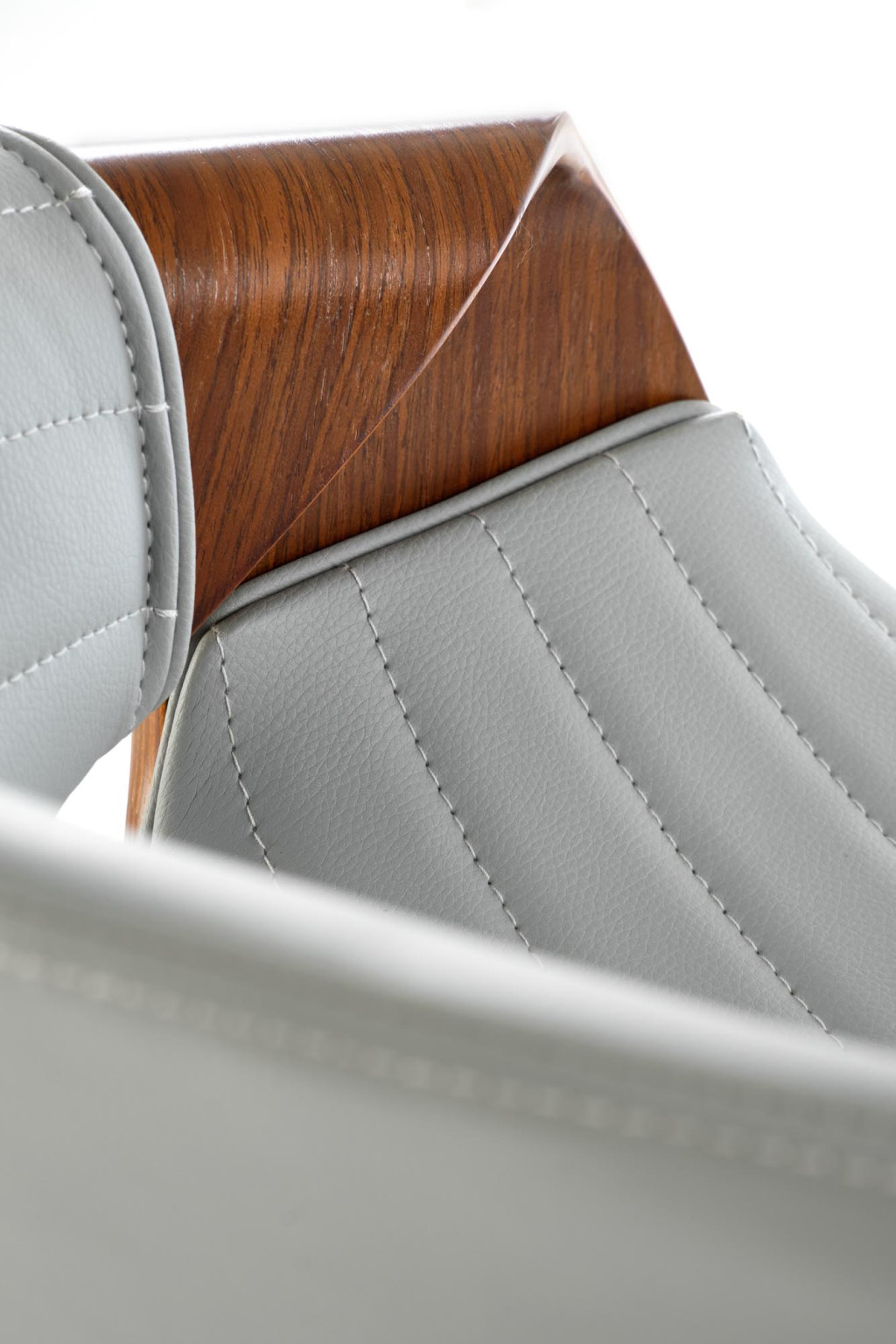 méretek: 55/51/91/63 cm, műbőr / hajlított rétegelt lemez / króm acél, szín: szürke / dió