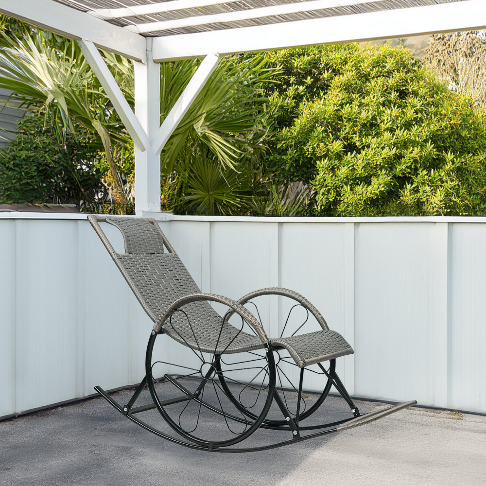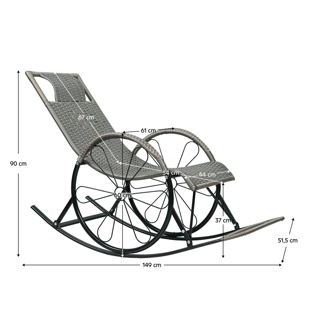 Hintaszék, rattan/fém, szürke, ROKIN