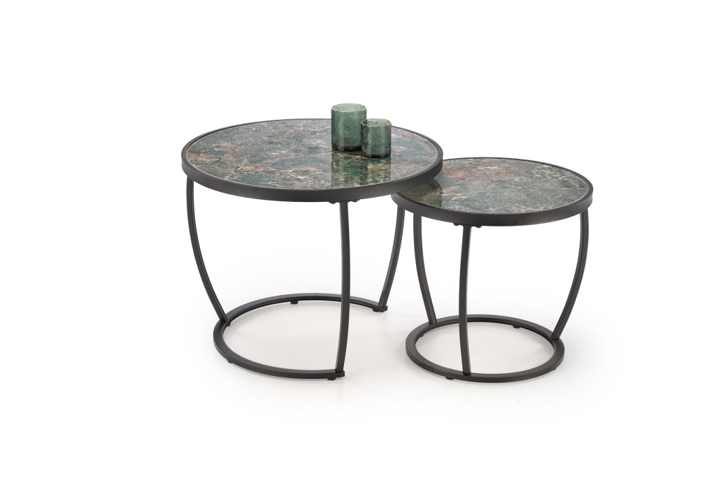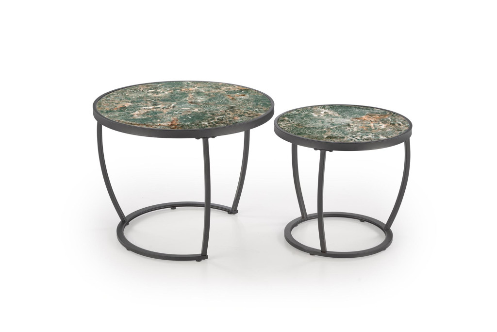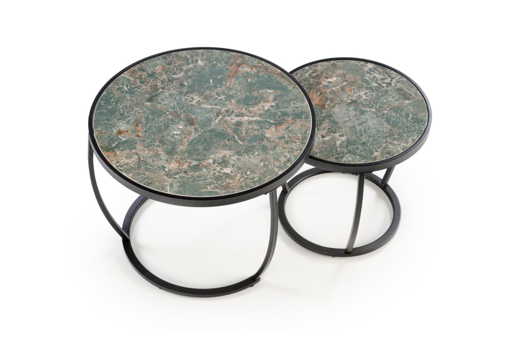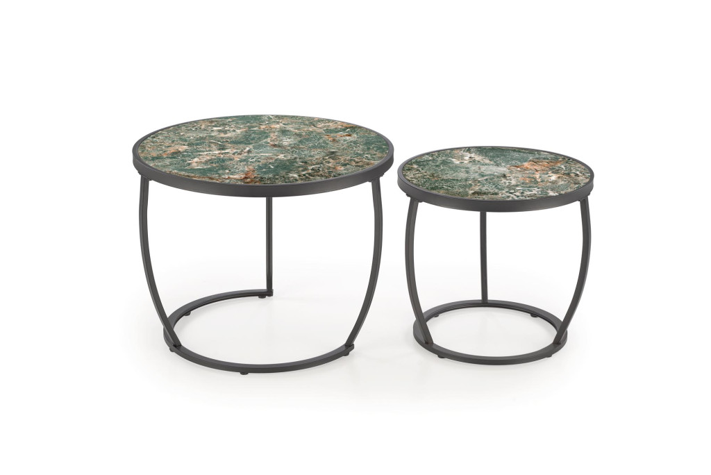 Ines dohányzóasztal (2 db-os szett) – zöld márvány / fehér
