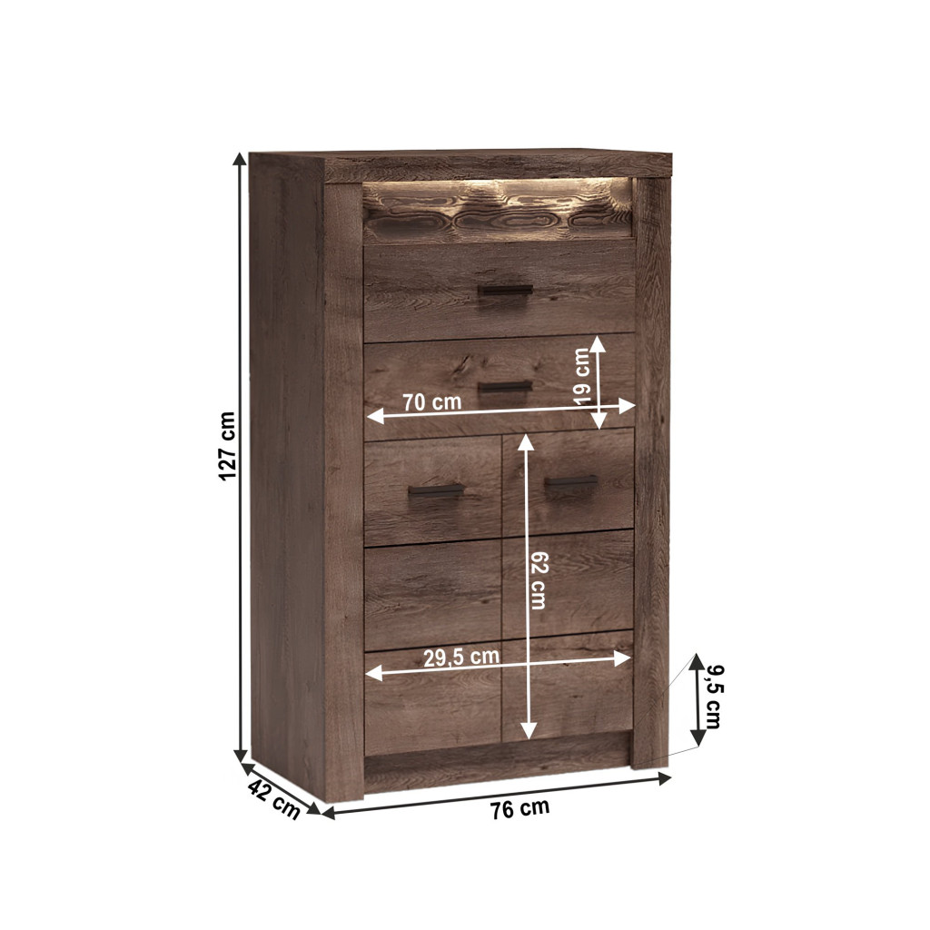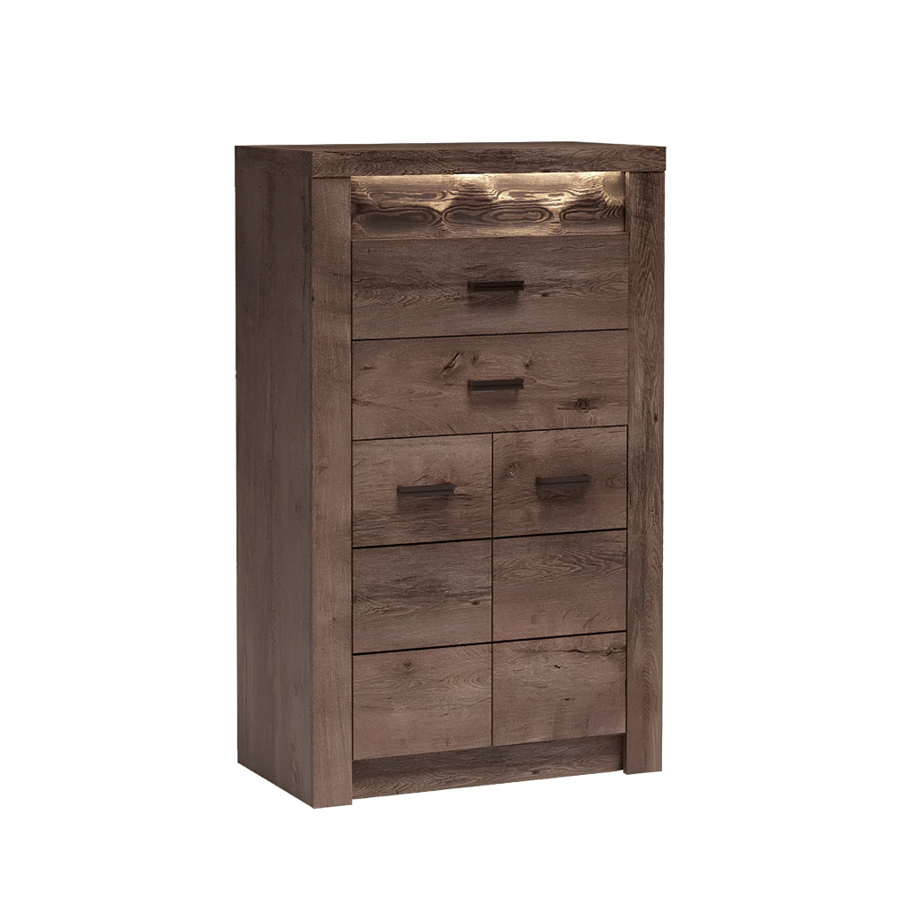 Az INFINITY rusztikus bútorcsalád komód eleme, megjelenése és kihasználhatósága miatt közkedvelt bútordarab. A bútorcsalád elemei nyers festett fa elemekkel, domború mintázattal, háromféle színváltozatban kaphatóak, a keretek anyagvastagsága 48 mm. Színe és formája tökéletesen követi korunk divatirányzatát, ezáltal bármely igényes enteriőrbe könnyen beilleszthető. LED világítás opcionálisan rendelhető hozzá.