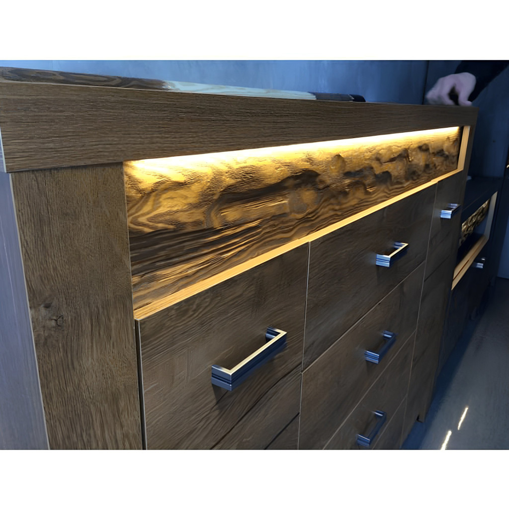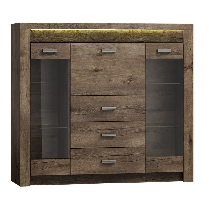 Az INFINITY rusztikus bútorcsalád vitrines komód eleme, megjelenése és kihasználhatósága miatt közkedvelt bútordarab. Nyers festett fa elemekkel, domború mintázattal, háromféle színváltozatban kaphatóak, a keretek anyagvastagsága 48 mm. Színe és formája tökéletesen követi korunk divatirányzatát, ezáltal bármely igényes enteriőrbe könnyen beilleszthető. LED világítás opcionálisan rendelhető hozzá.