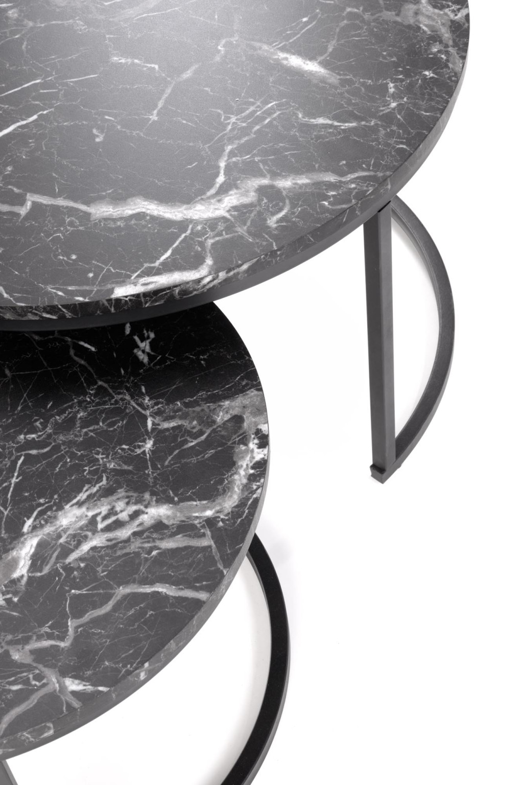 méretek: 79/47 cm és 59/37 cm; két darabos szett, anyag: laminált MDF / porfestett acél, szín: fekete márvány / fekete