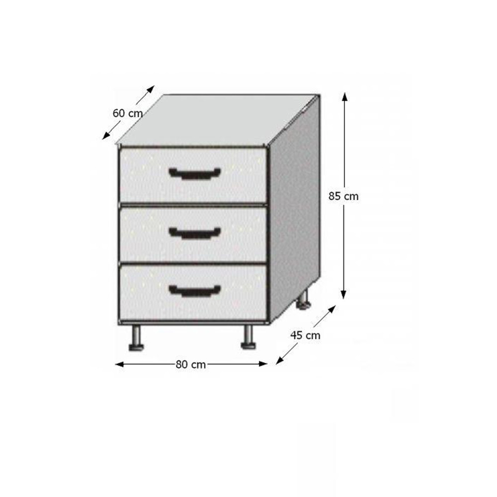 A szekrények munkalappal és alsó szegéllyel vannak szállítva. Munkalap vastagsága: 28 mm. Vásárolható hozzá univerzális mosogatótálca is.