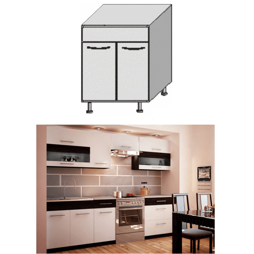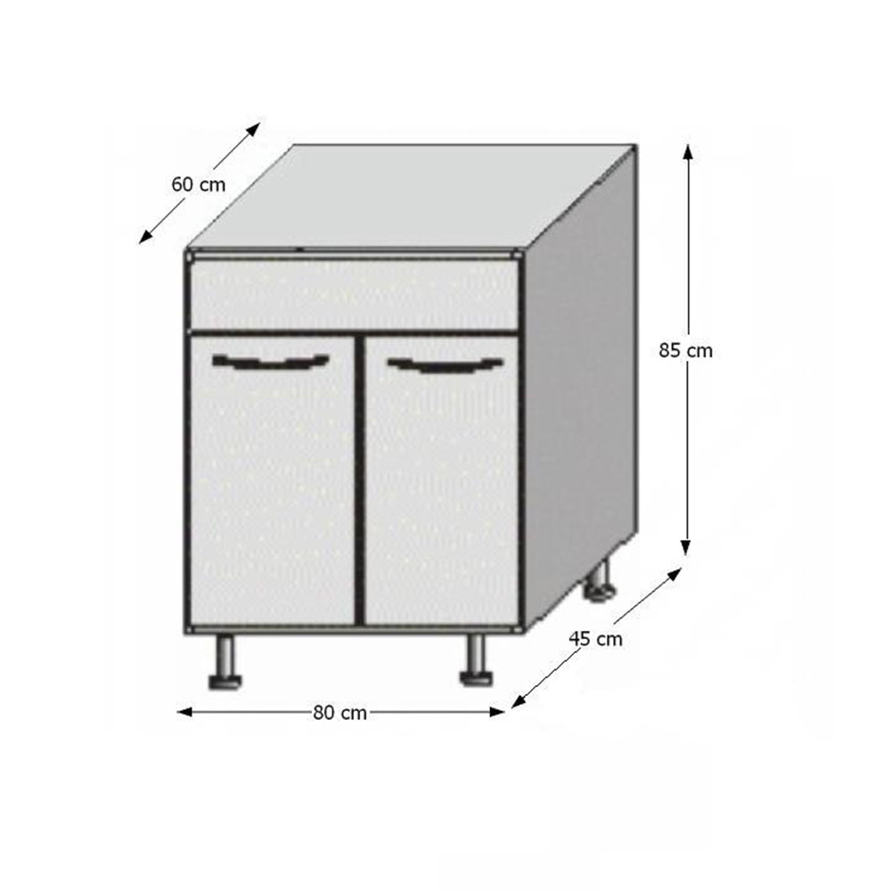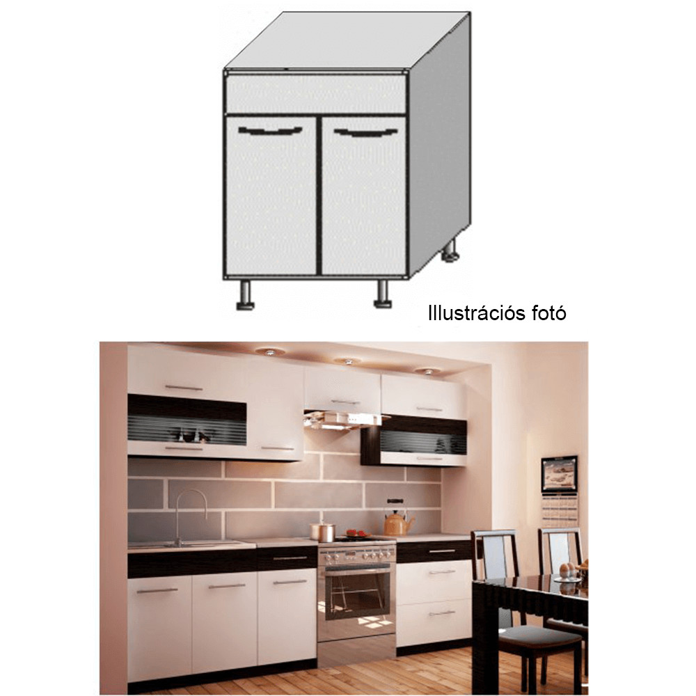 A szekrények munkalappal és alsó szegéllyel vannak szállítva. Munkalap vastagsága: 28 mm. Vásárolható hozzá univerzális mosogatótálca is.