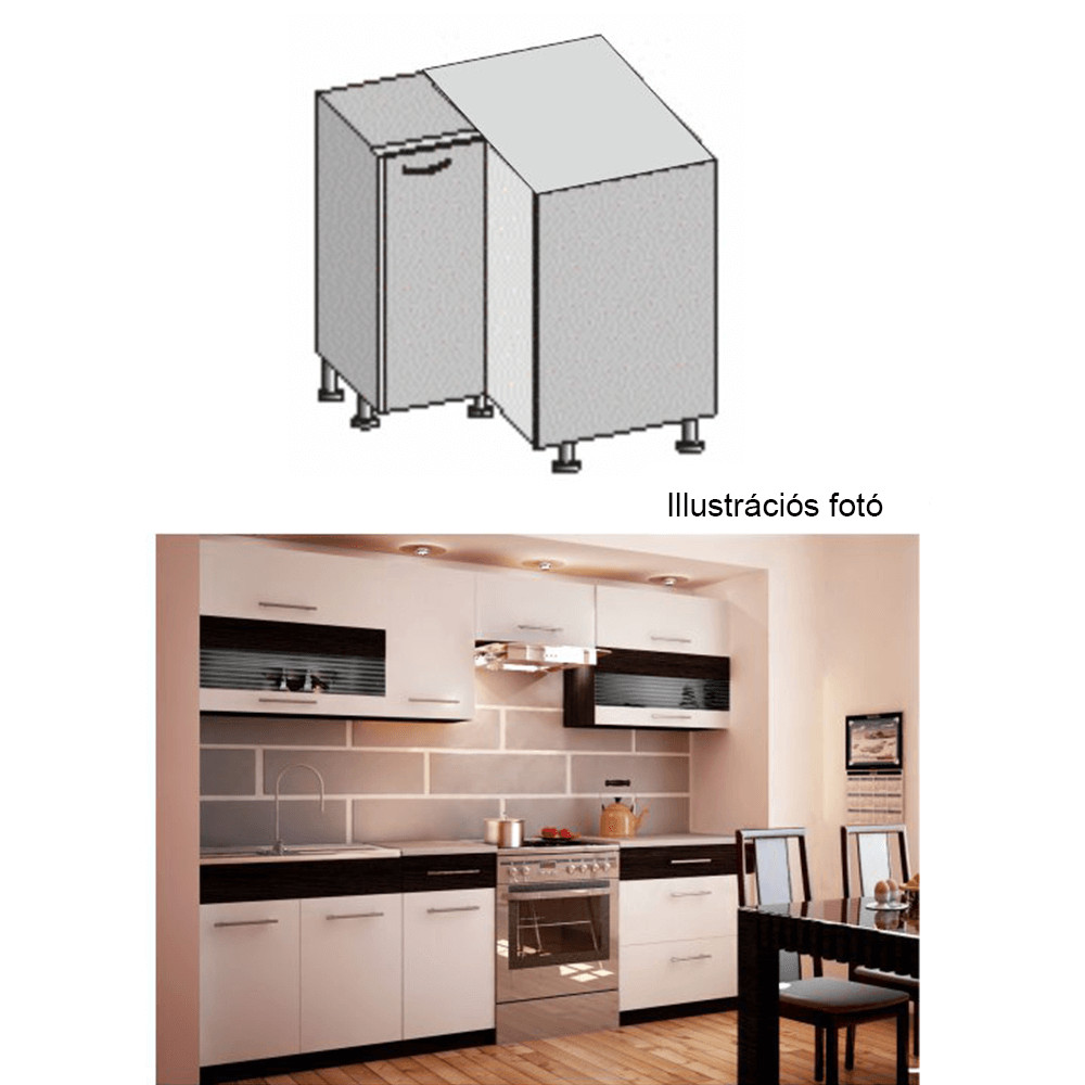 A szekrények munkalappal és alsó szegéllyel vannak szállítva. Munkalap vastagsága: 28 mm. Vásárolható hozzá univerzális mosogatótálca is.