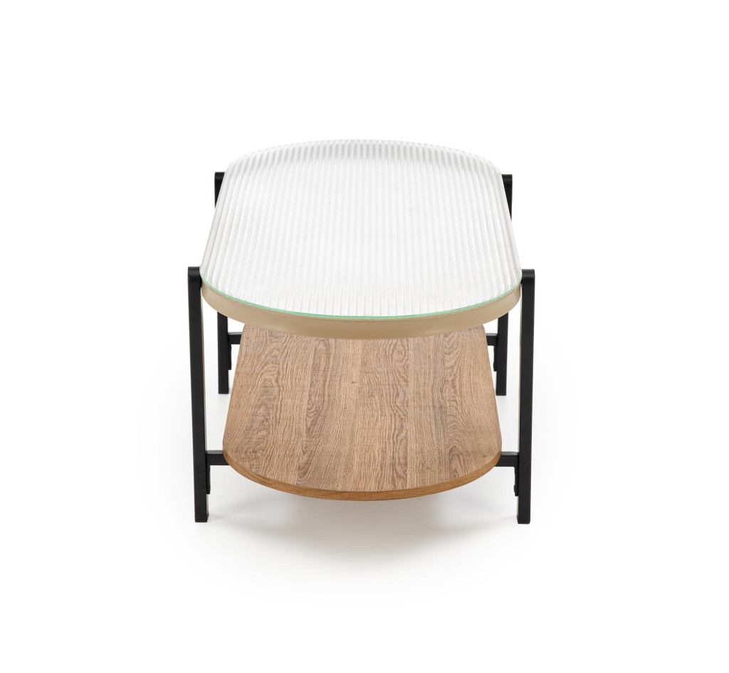 méretek: 110/54/43 cm, anyag: üveg / laminált MDF / porfestett acél, szín: natúr / fekete