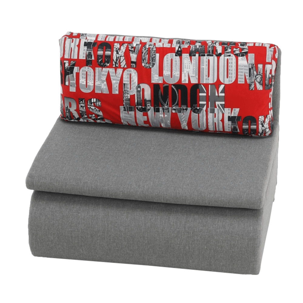 Széthúzható fotel, szürke / minta, KENY NEW