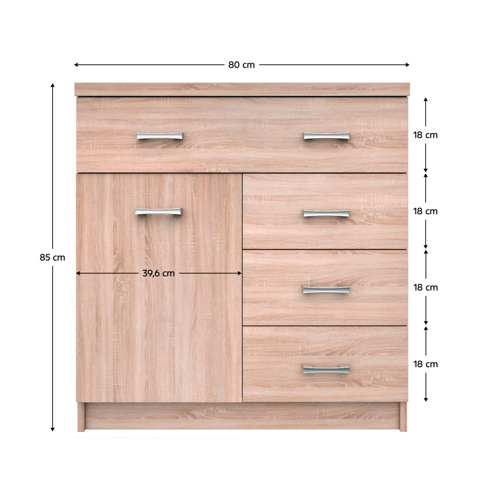 Komód 1D4S, sonoma tölgy, TOPTY TYP 20