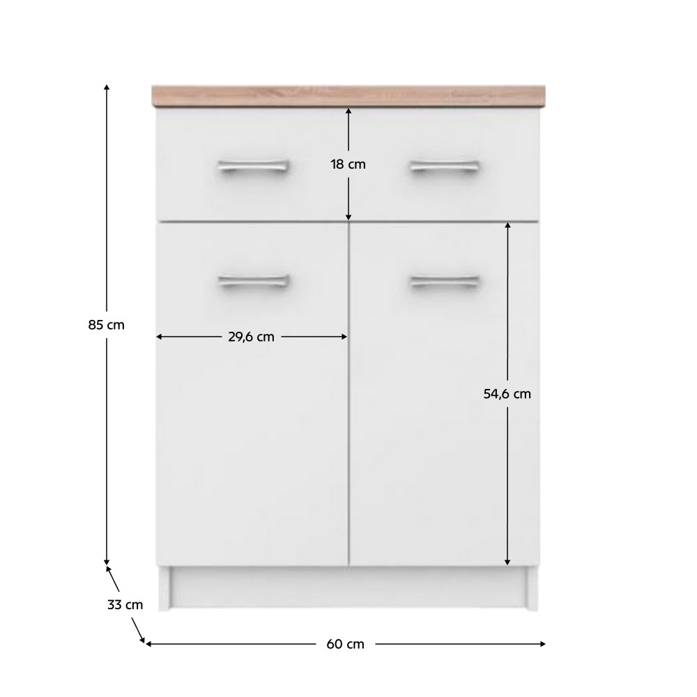 Komód 2D1S/60, fehér/sonoma tölgy, TOPTY TYP 41