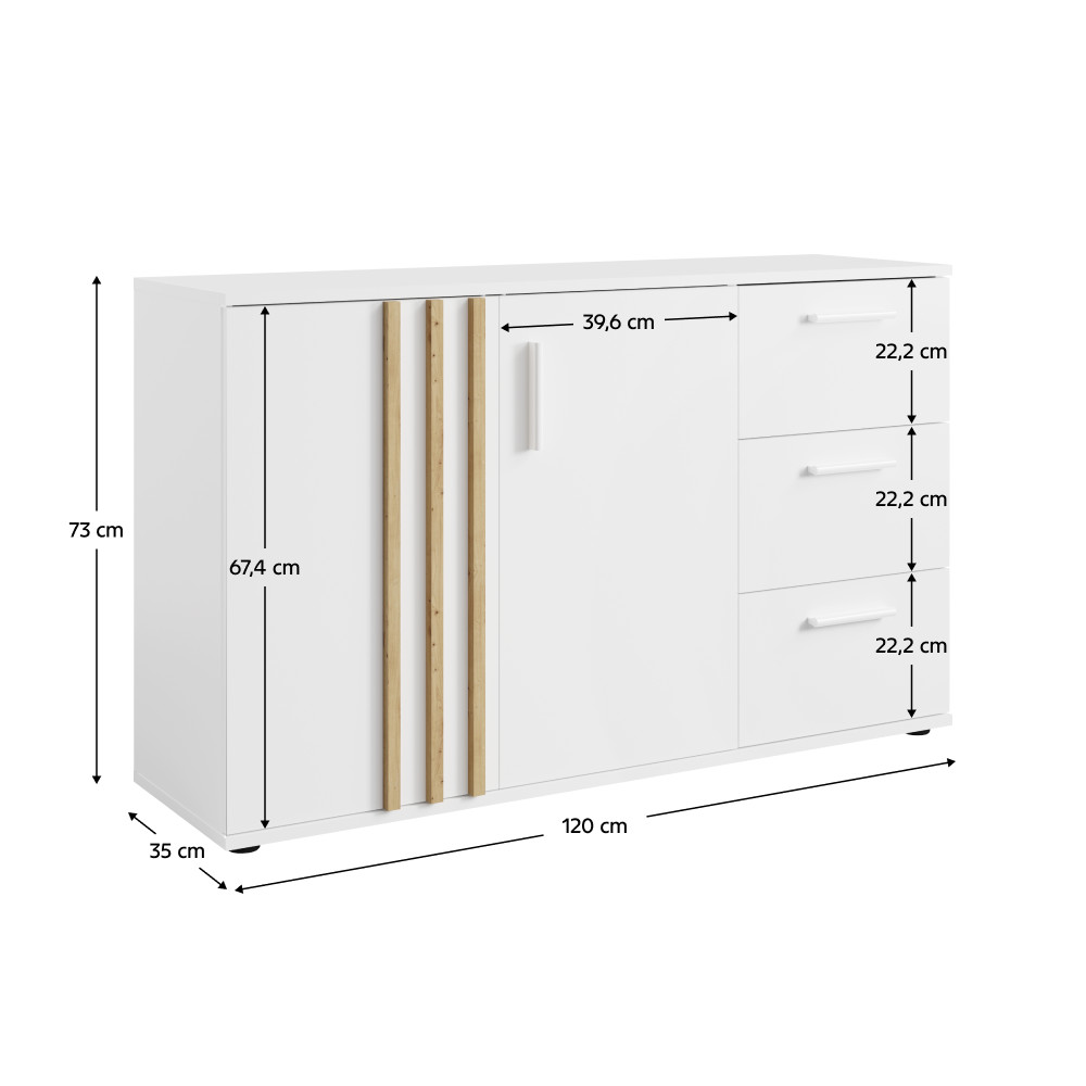 Komód, 2D3S, fehér/artisan tölgy, TOLIS TYP 3