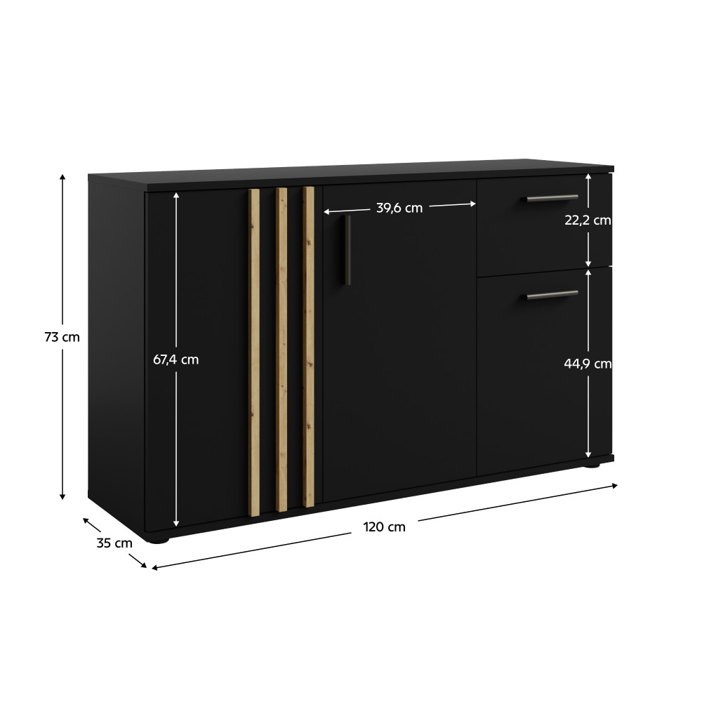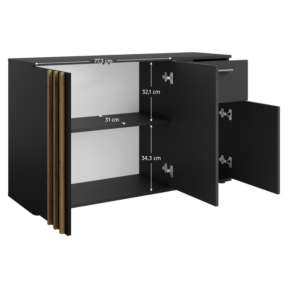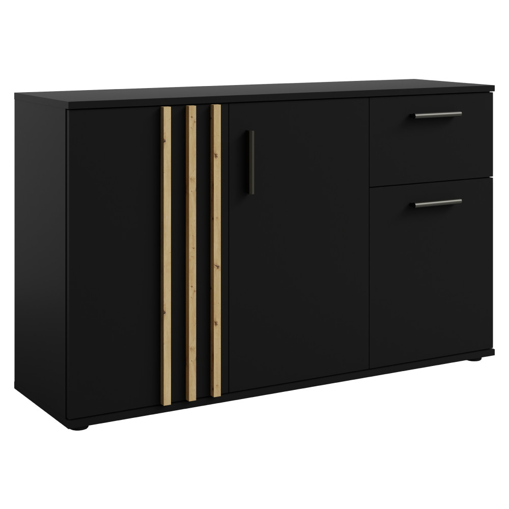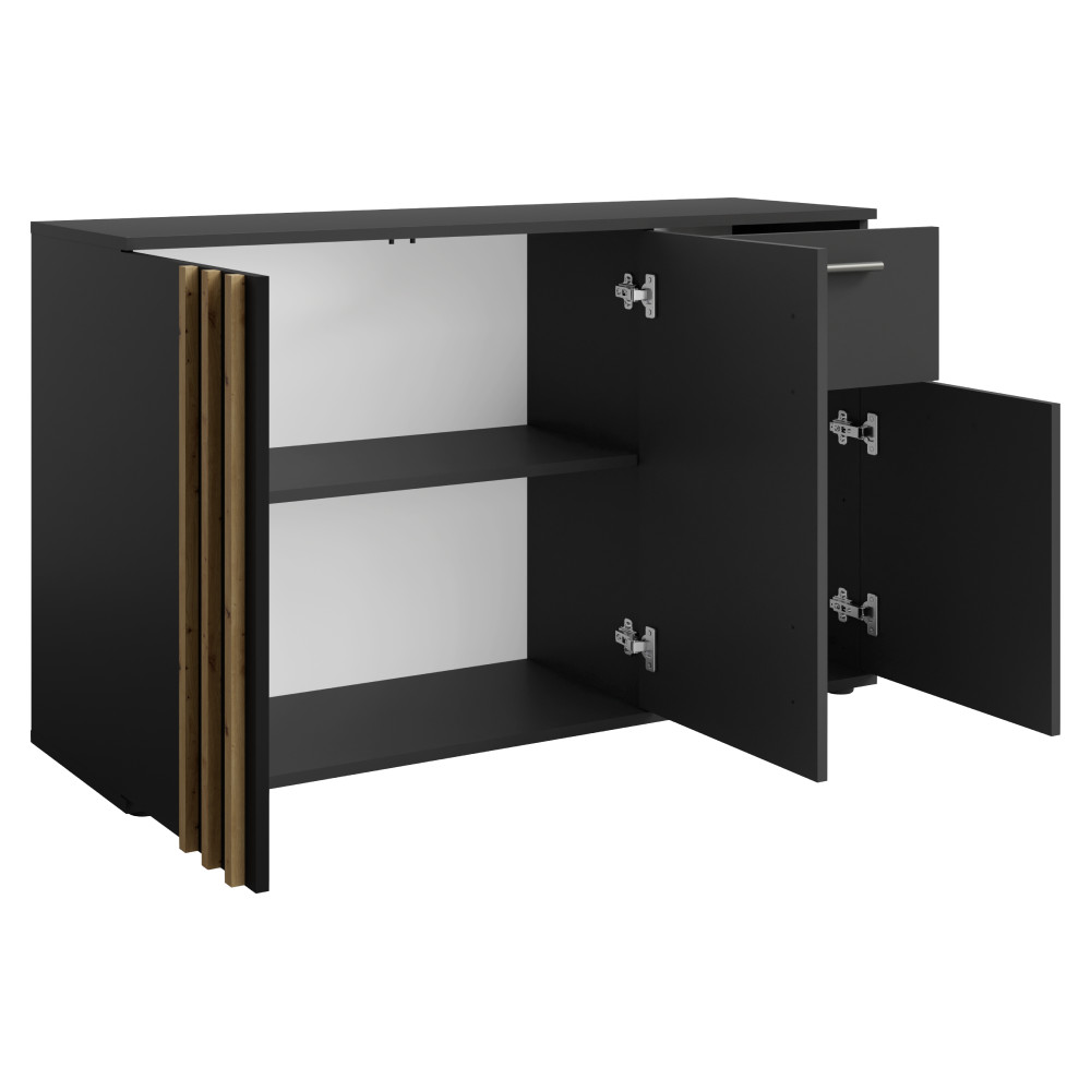 Komód, 3D1S, fekete/artisan tölgy, TOLIS TYP 2