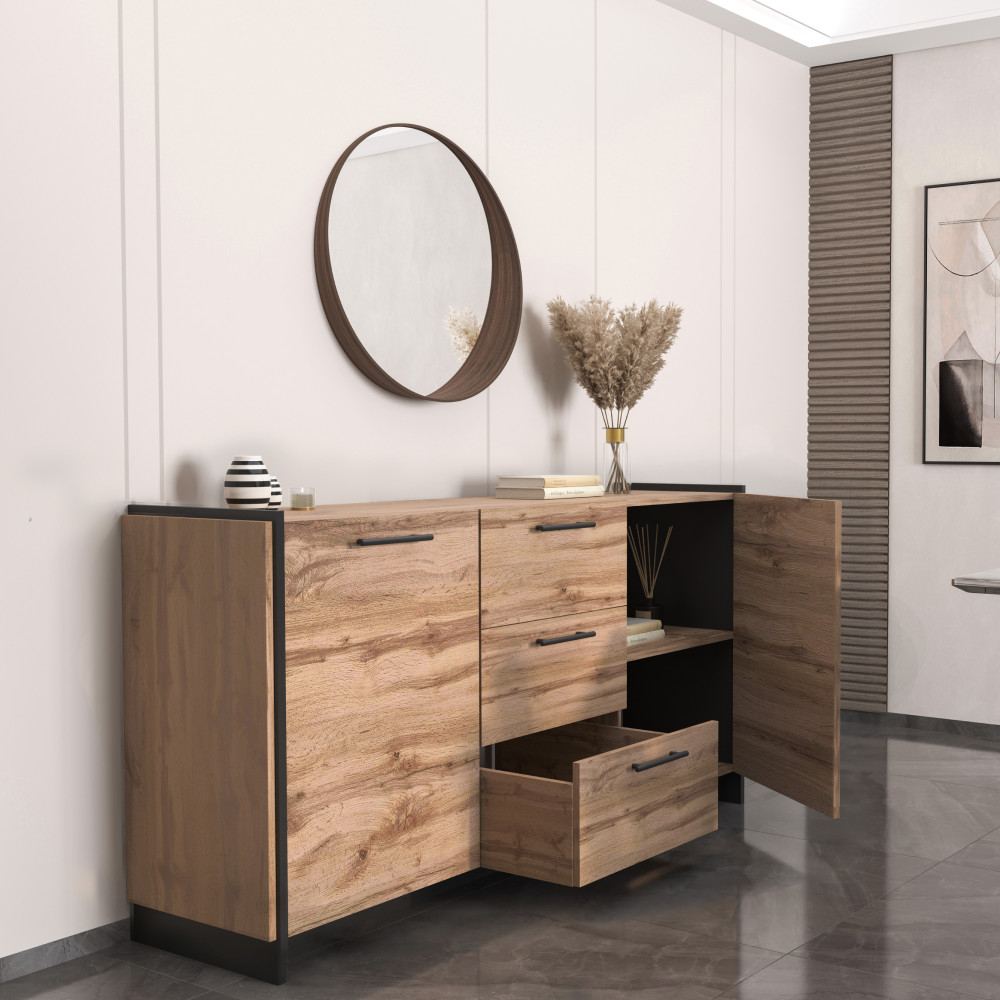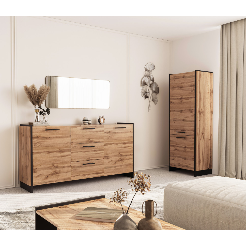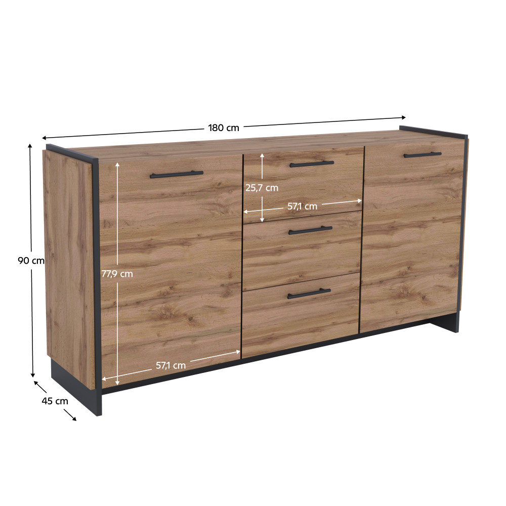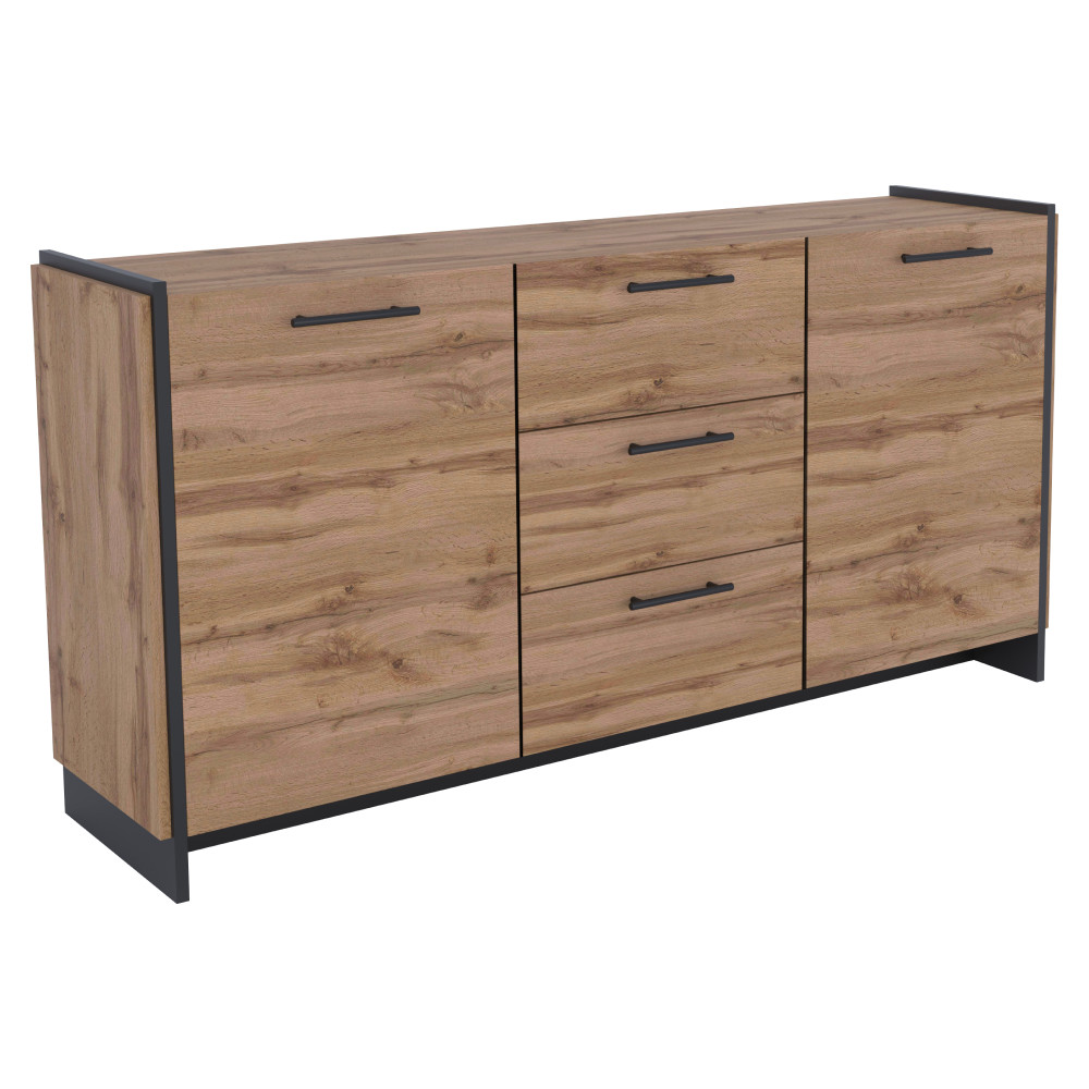 Komód, wotan tölgy/fekete, AMONI 2D3S