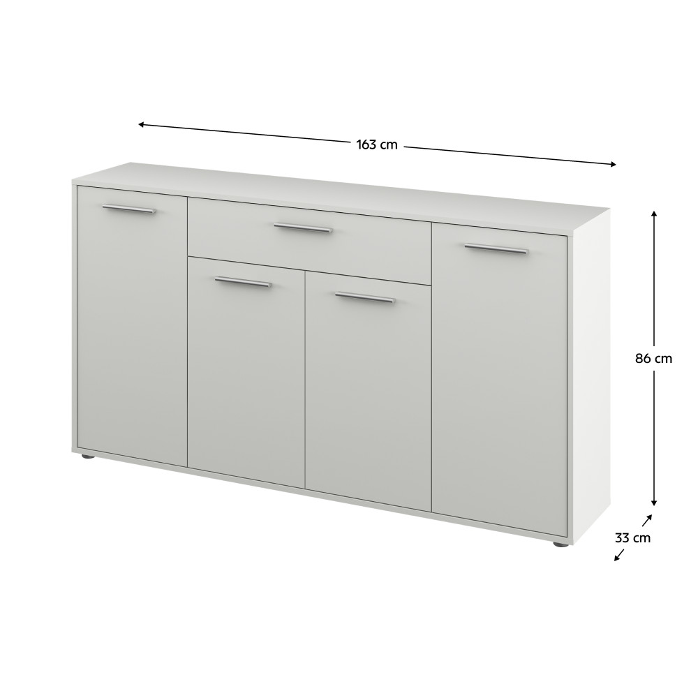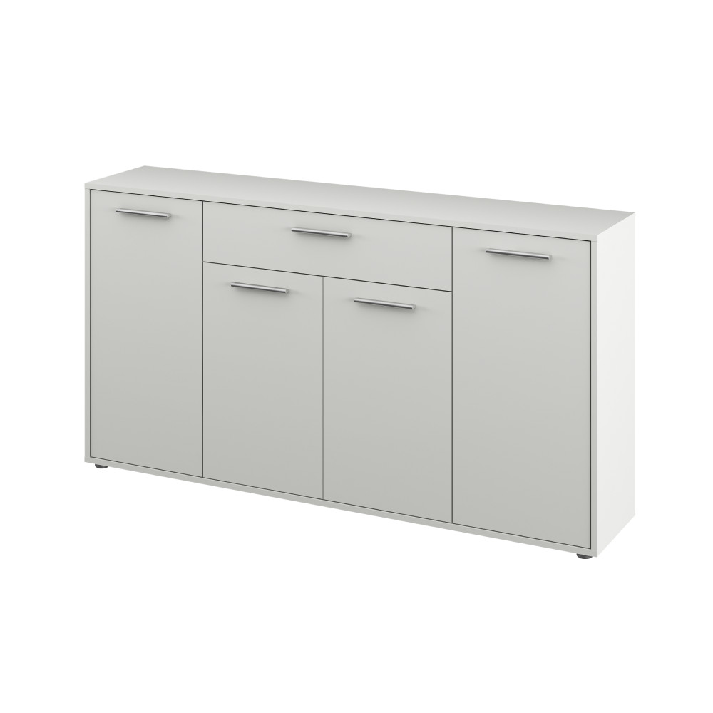 A LUNIA fehér színű komód, 4 ajtós és 1 fiókos kivitelben, igényes megjelenése és kihasználhatósága miatt közkedvelt bútordarab.