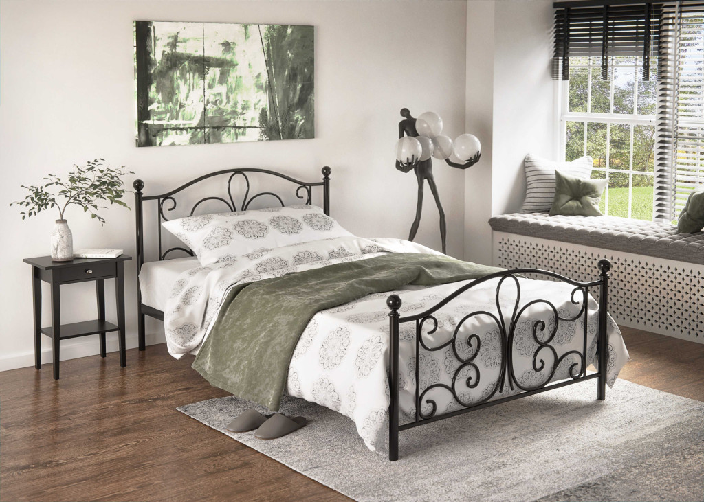 méretek: 124/209/93 cm, anyag: porfestett acél, szín: fekete, * ágy matrac nélkül, opcionális matrac POLARIS 120 vagy SYRIUSZ 120