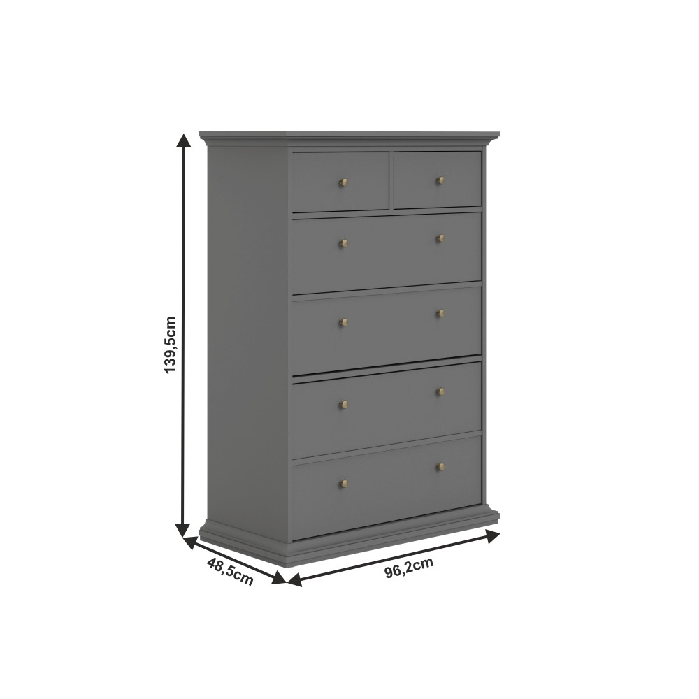 A PARIS bútorcsalád komód eleme, elegáns provance-i stílusának köszönhetően közkedvelt bútordarab. Kombinálható a PARIS bútorcsalád többi tagjával.