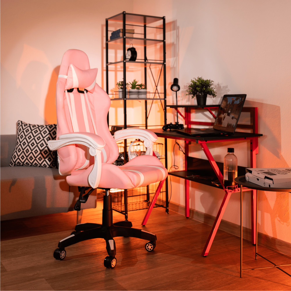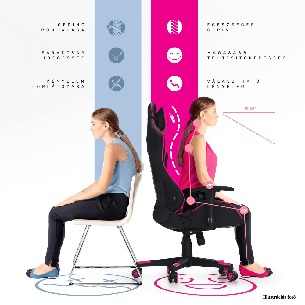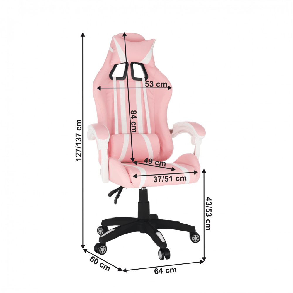 A PINKY állítható magasságú és háttámlájú ifjúsági gamer/irodai szék, ringató mechanizmusú, párnákkal a hát-és fejrésznél.