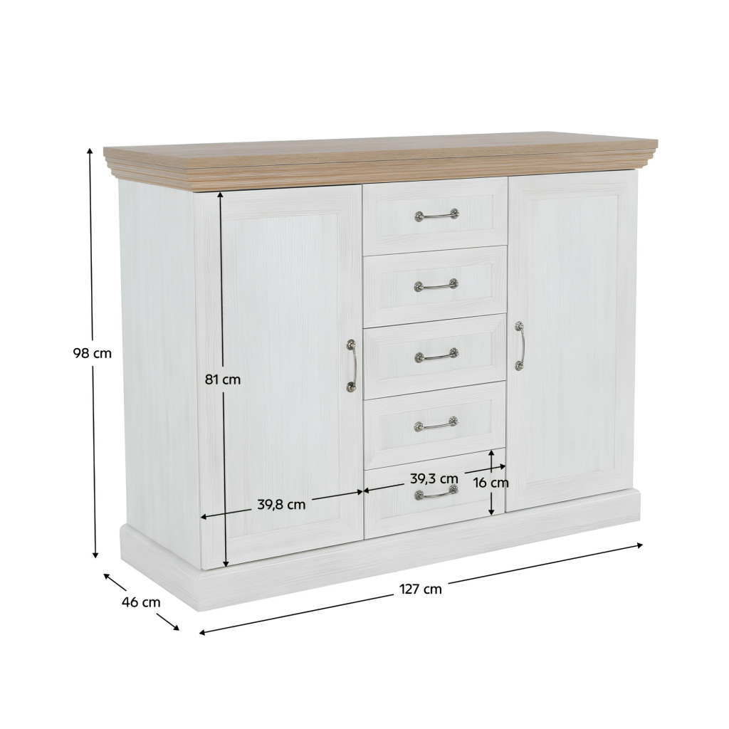 Az elegáns provance-i stílusú ROYAL bútorcsalád komód eleme, megjelenése és kihasználhatósága miatt közkedvelt bútordarab.