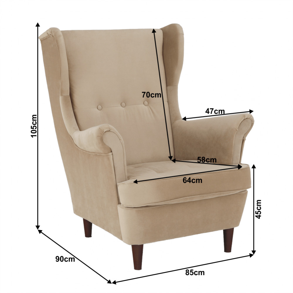 RUFINO fülesfotel dió lábbal - bézs