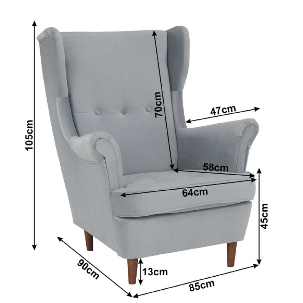 RUFINO fülesfotel dió lábbal - szürke