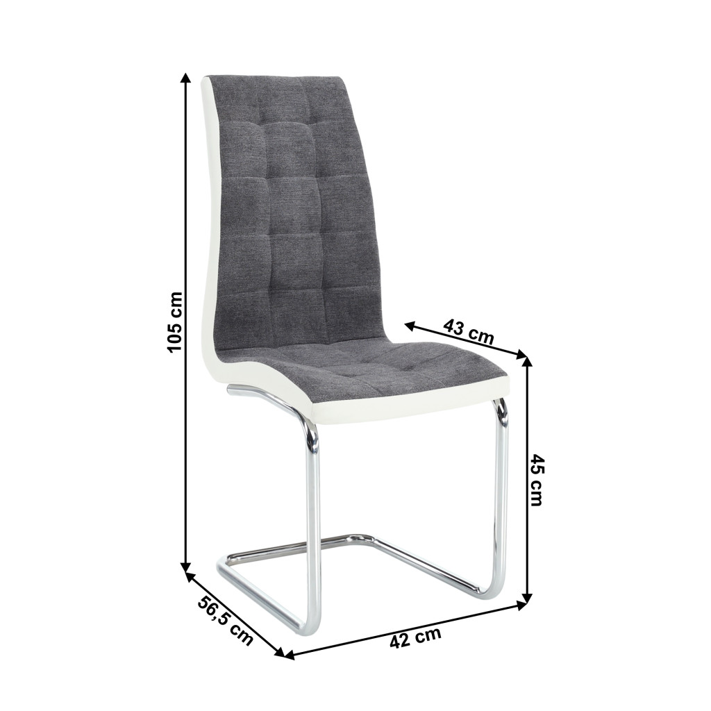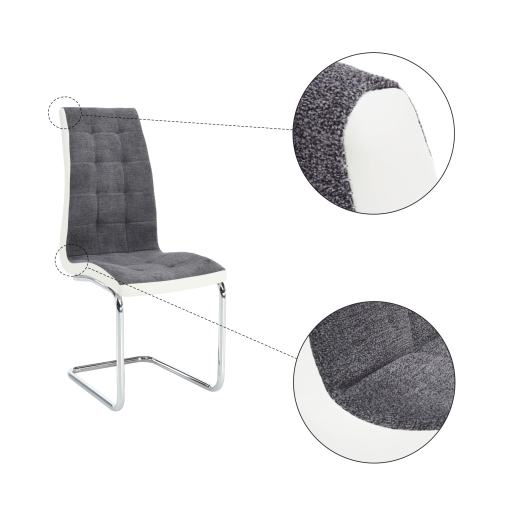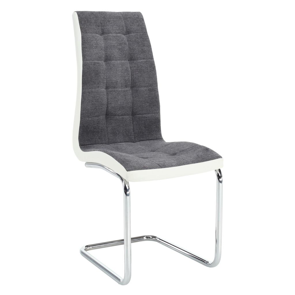 Étkezőszék, sötétszürke szövet/textilbőr fehér/króm, SALOMA NEW