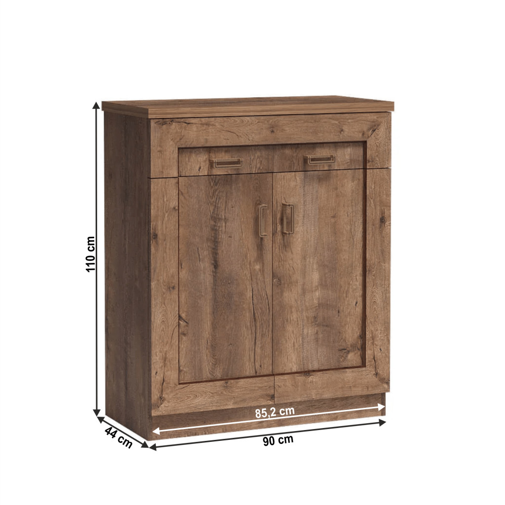 A TEDY rusztikus stílusú bútorcsalád komód eleme, fém fogantyúkkal, vidéki stílusban, megjelenése és kihasználhatósága miatt közkedvelt bútordarab.
