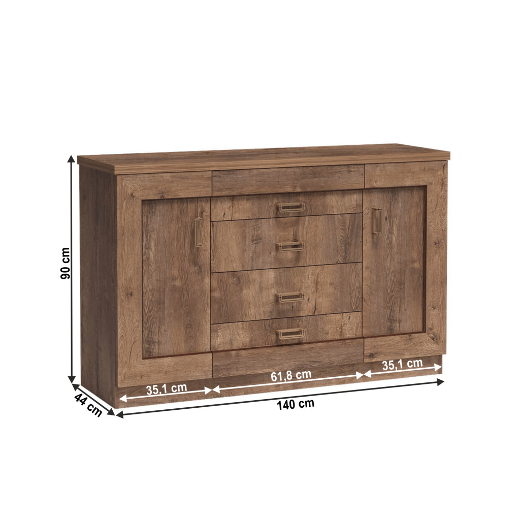 A TEDY rusztikus stílusú bútorcsalád komód eleme, fém fogantyúkkal, vidéki stílusban, megjelenése és kihasználhatósága miatt közkedvelt bútordarab.