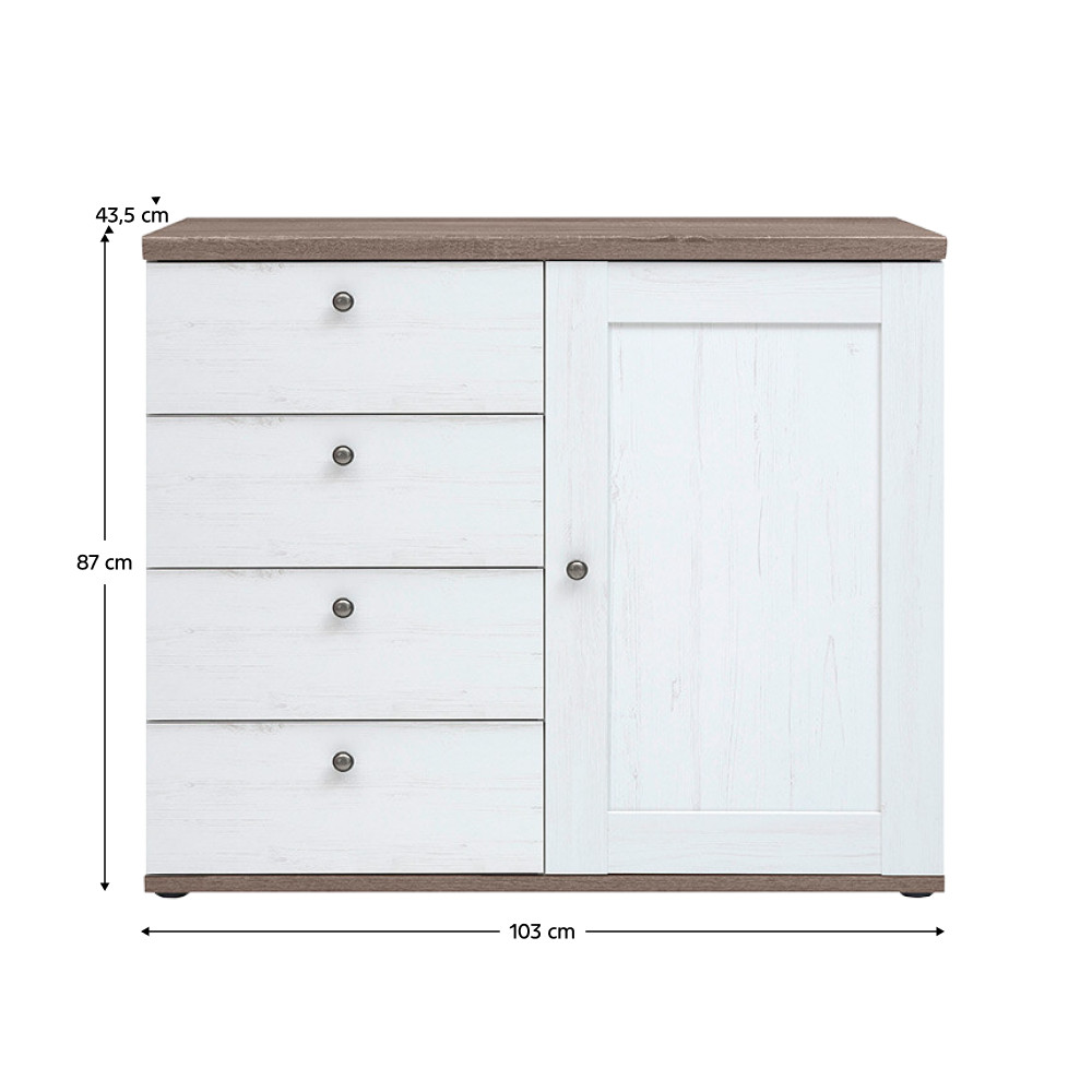 Komód, canyon fenyő/sonoma trüffel tölgy, TEINA KOM4S1D